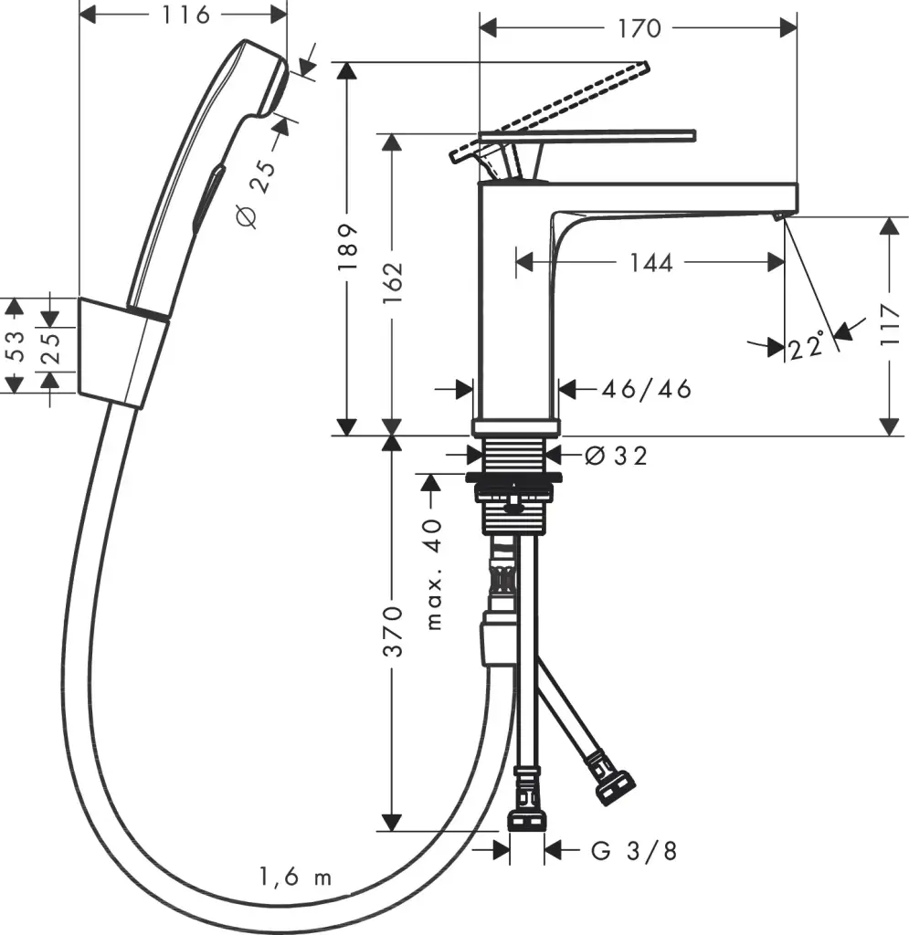 Hansgrohe Tecturis E Смеситель для раковины однорычажный с гигиеническим душем, цвет: матовый черный 73210670