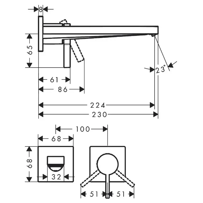 Hansgrohe Tecturis E Смеситель для раковины встраиваемый, внешняя часть, излив 22,4 см, цвет: хром 73051000