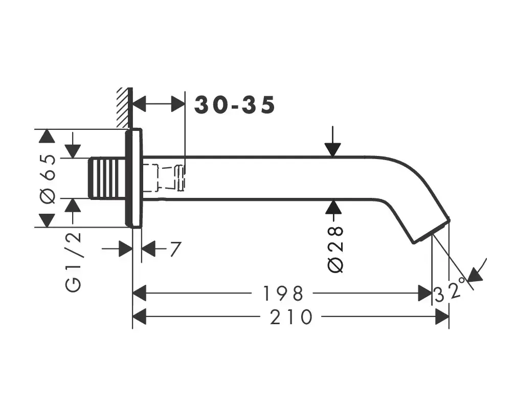 Hansgrohe Tecturis S Излив настенный для ванны 19,8 см, цвет: матовый черный 73411670