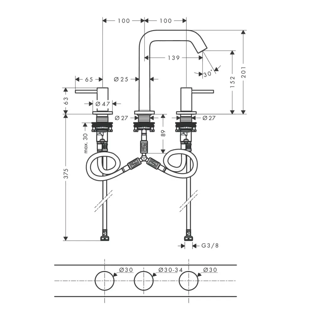 Hansgrohe Tecturis S Смеситель для раковины на 3 отверстия двухвентильный, цвет: матовый черный 73330670