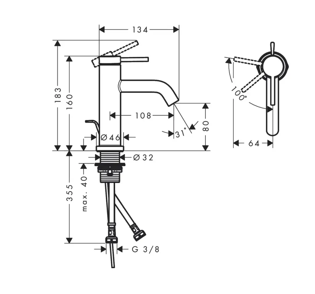 Hansgrohe Tecturis S Смеситель для раковины однорычажный, с донным клапаном, цвет: матовый черный 73302670