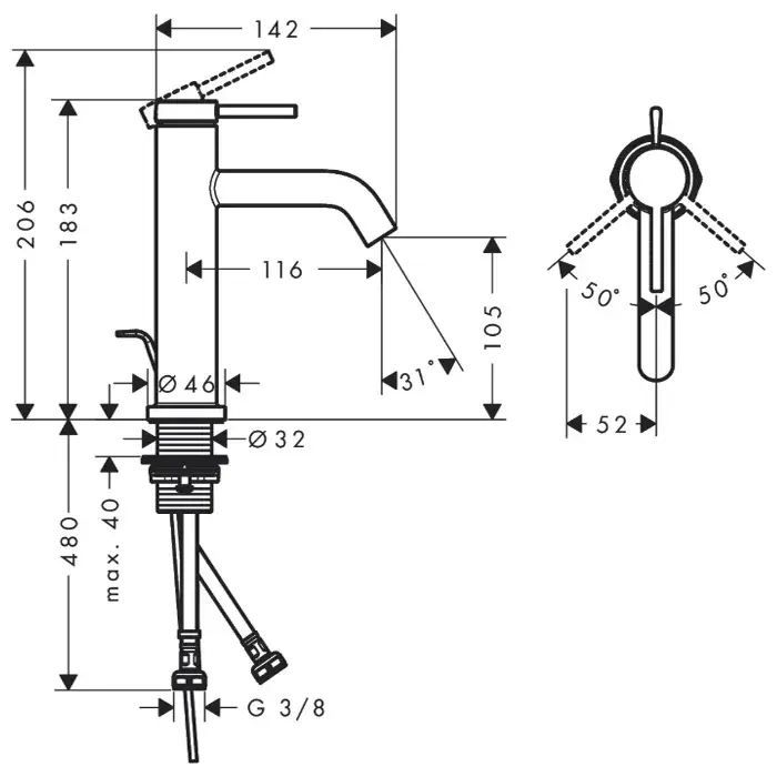 Hansgrohe Tecturis S Смеситель для раковины однорычажный, с донным клапаном, цвет: матовый белый 73310700