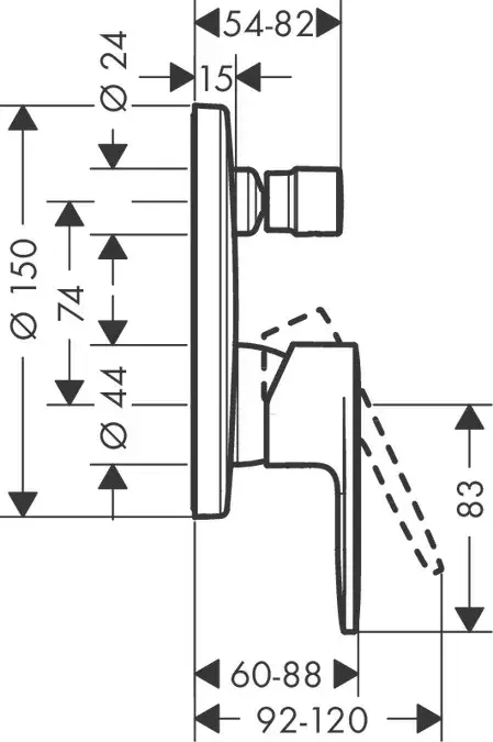 Hansgrohe Vernis Blend Смеситель для ванны встраиваемый на 2 потребителя, внешняя часть, цвет: хром 71466000