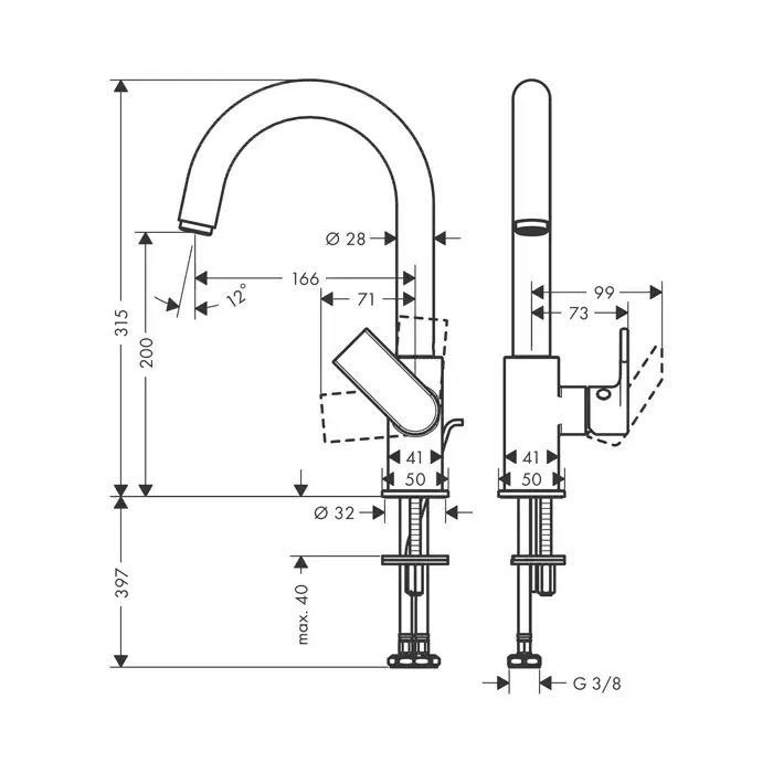 Hansgrohe Vernis Shape Смеситель для биде, однорычажный, с донным клапаном, цвет: хром 71219000