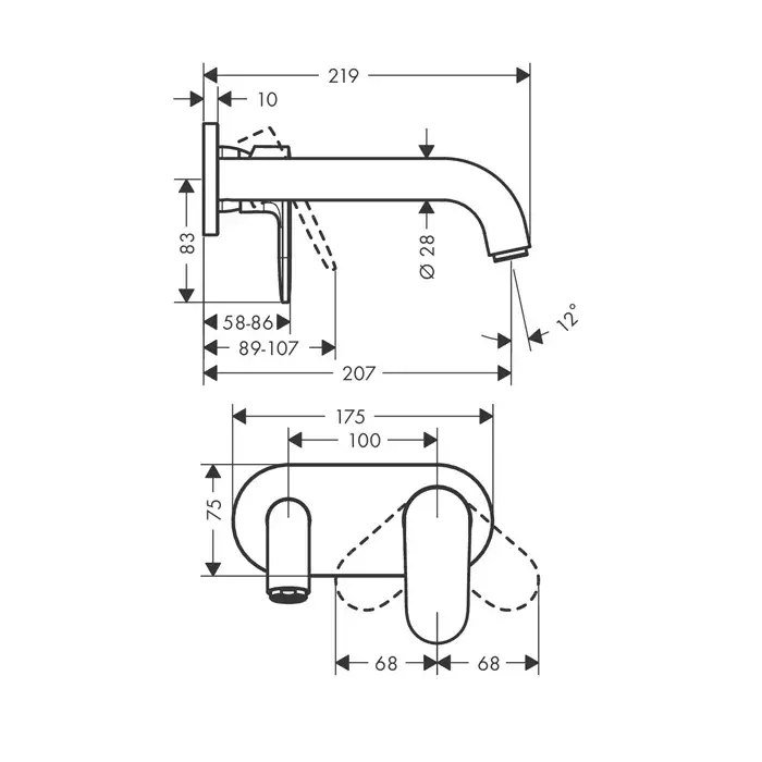 Hansgrohe Vernis Shape Смеситель для раковины встраиваемый, внешняя часть, цвет: матовый черный 71578670