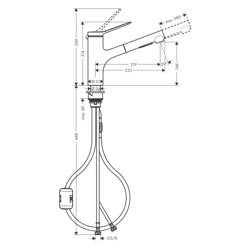 Hansgrohe Zesis M33 Смеситель для кухонной мойки с выдвижным излливом, цвет: нержавеющая сталь 74800800