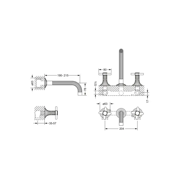 Jorger Cronos Смеситель для раковины, на 3 отверстия, настенный монтаж, цвет: хром 637.30.360.000
