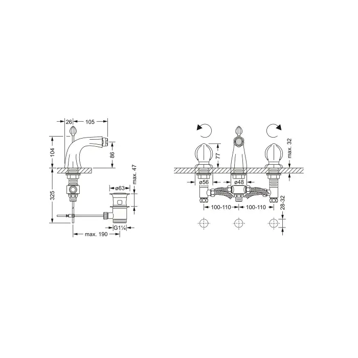 Jorger Florale Lotos Minarett Смеситель для биде, на 3 отверстия, цвет: хром 603.30.100.000