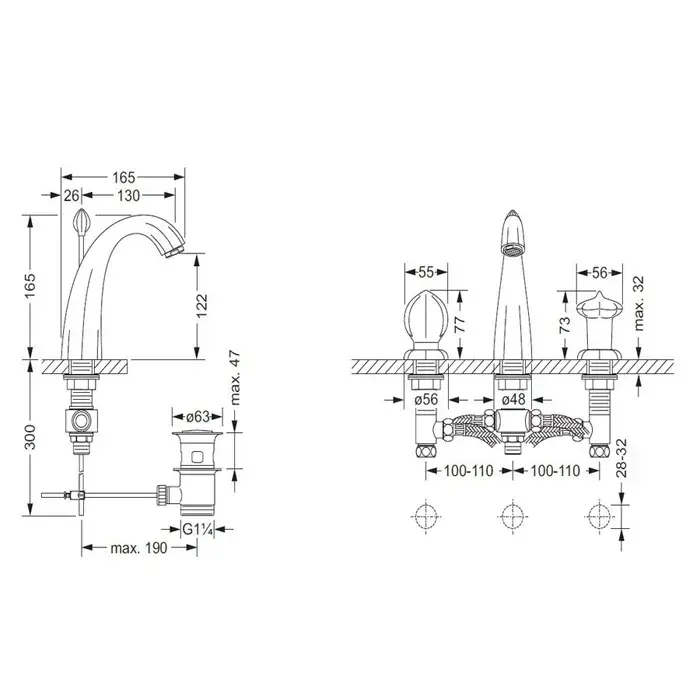 Jorger Florale Lotos Minarett Смеситель для биде, на 3 отверстия, цвет: хром 603.30.100.000