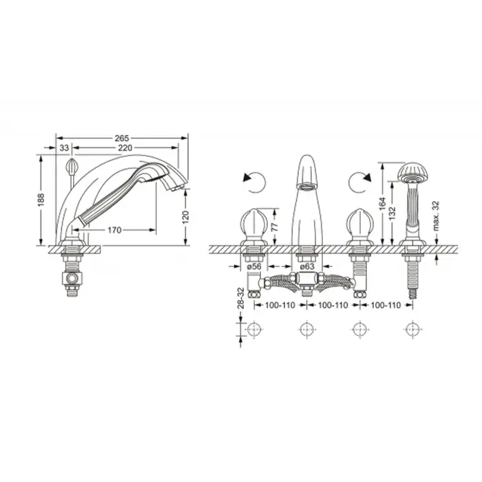 Jorger Florale Lotos Minarett Смеситель для ванны на борт, на 4 отв., цвет: хром 603.40.100.000