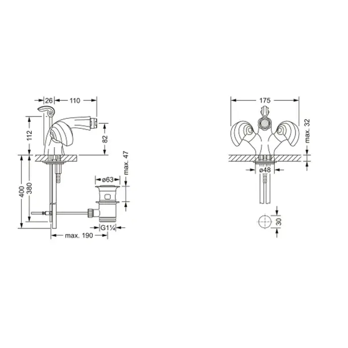 Jorger Muschel Смеситель для маленькой раковины, на 3 отверстия, цвет: хром 601.30.200.000