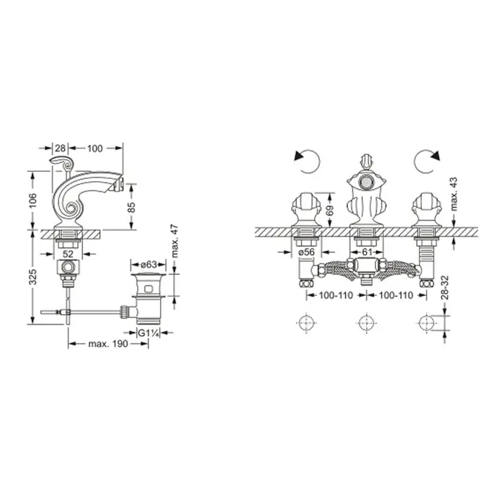Jorger Muschel Смеситель для биде, на 3 отверстия, цвет: хром 601.30.100.000
