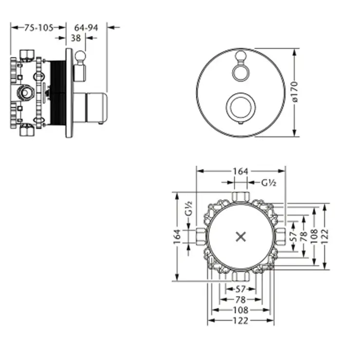 Jorger Muschel Термостат для душа скрытого монтажа с запорным вентилем, цвет: хром 611.40.360.000