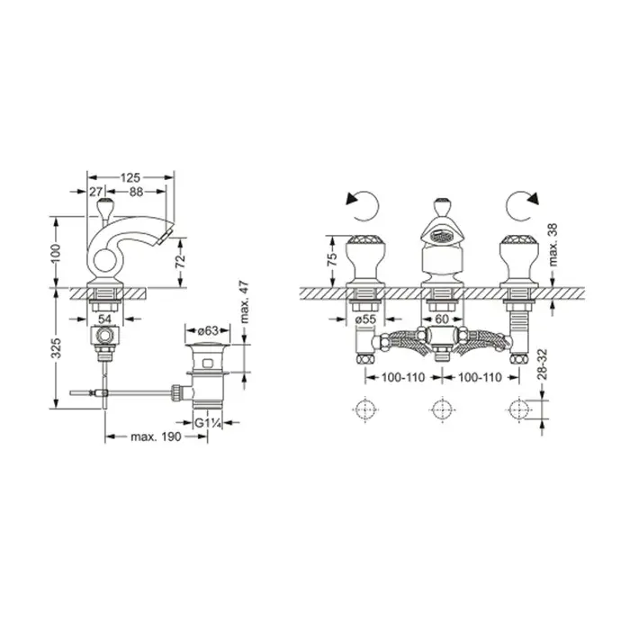 Jorger Palazzo Crystal Смеситель для маленькой раковины, на 3 отверстия, цвет: хром 605.30.200.000