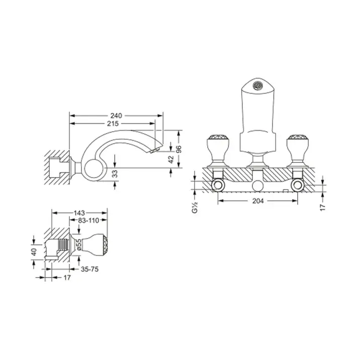 Jorger Palazzo Crystal Смеситель для ванны, на 4 отверстия, на борт ванны, цвет: хром 605.40.150.000
