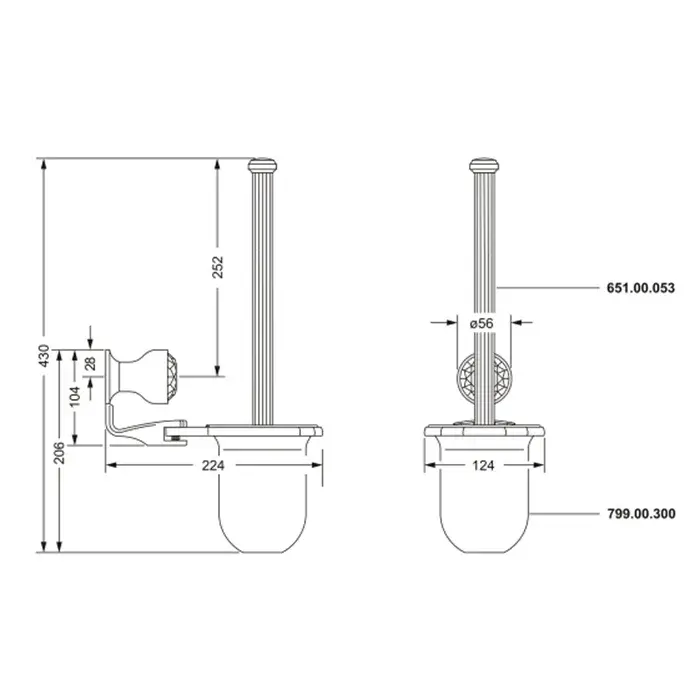 Jorger Palazzo Crystal Туалетный ёршик, с настенным держателем, цвет: хром 605.00.000.000