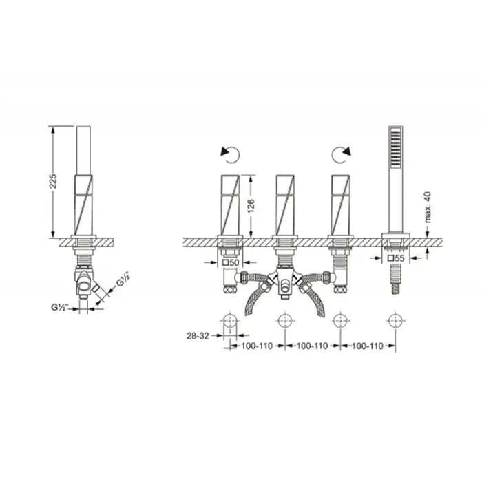 Jorger Turn Смеситель для ванны, на 4 отверстия, монтаж на борт ванны, цвет: хром 623.40.150.000