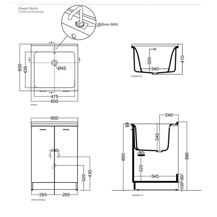 Kerasan Aquadom Тумба для постирочной 60x60x86h см, напольная, с рак. и сиф., цвет: Bianco matt 9165k3*0