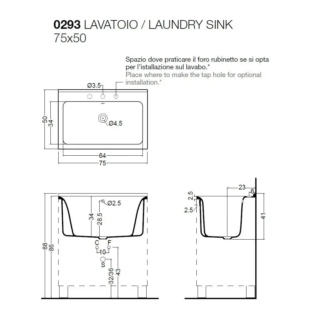 Kerasan Aquadom Тумба для постирочной 75x50x86h см, напольная, с рак. и сиф., цвет: Bianco matt 9164k3*1