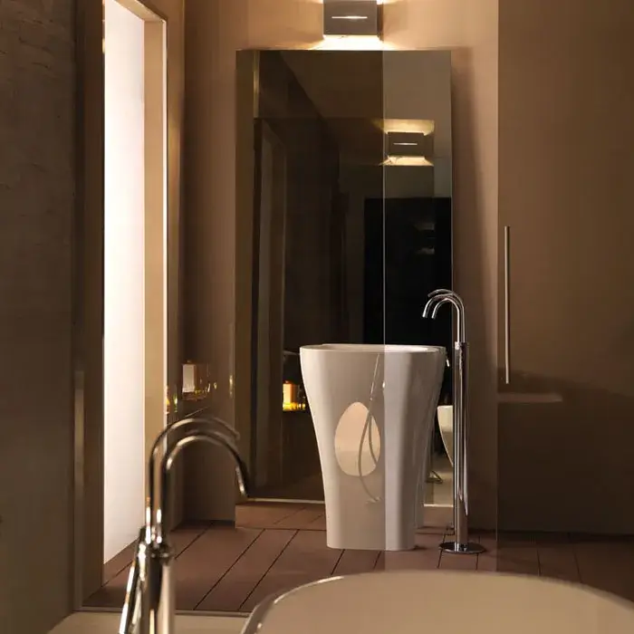 Kerasan Aquatech Биде напольное 55,5x33,5 см, с 1 отв. под смес., с переливом и креп., цвет: Bianco 372101*1