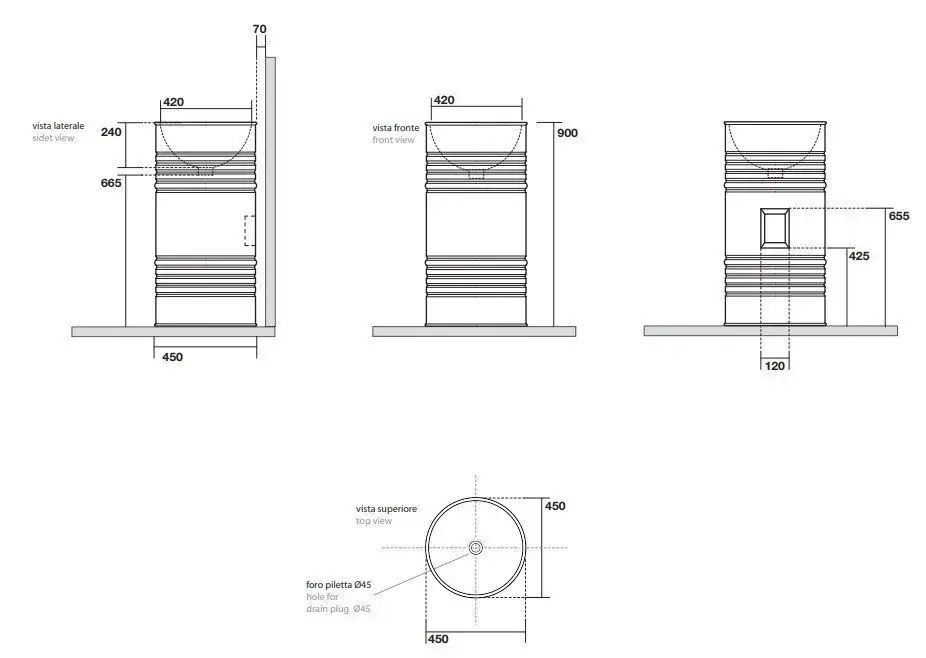 Kerasan Artwork Раковина свободностоящая Barrel d45x90h см, с сиф. и слив. трубой, цвет: Bianco 4742K01