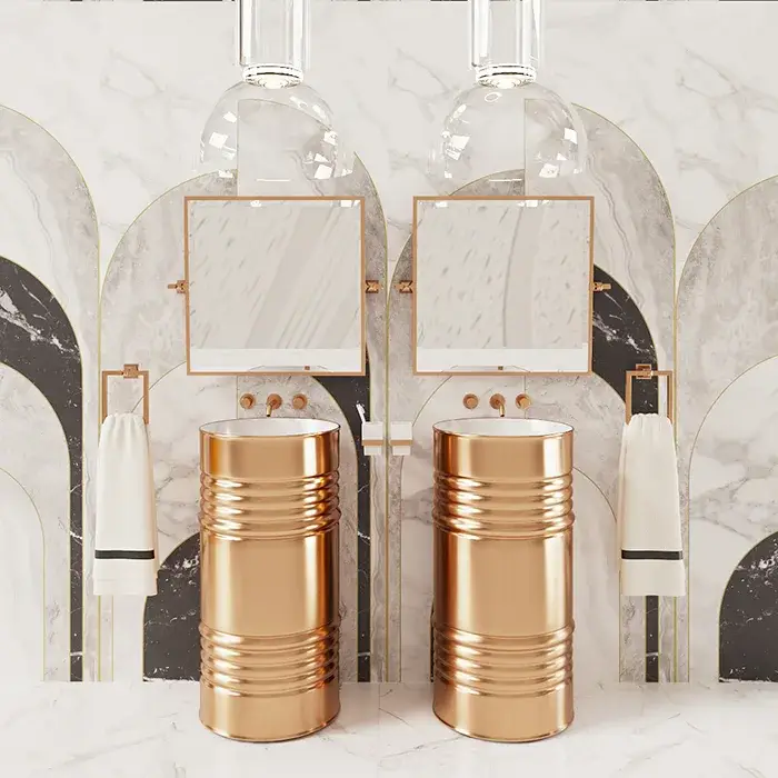 Kerasan Artwork Раковина свободностоящая Barrel d45x90h см, с сиф. и слив. трубой, цвет: Bianco-oro 4742K39