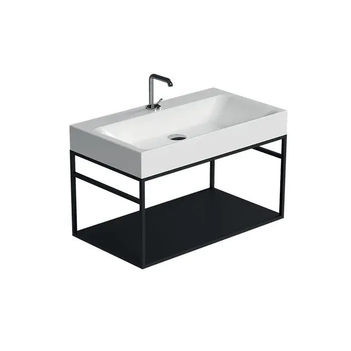 Kerasan Cento Консоль под раковину на 100 см подвесная, с металлической полкой, цвет: Nero matt 925131 Nero matt