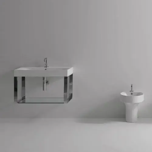 Kerasan Cento Консоль под раковину на 80 см подвесная, со стеклянной полкой, цвет: Cromo 9126K1cr