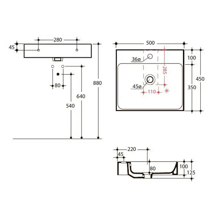 Kerasan Cento Раковина подвесная 25х45 см, с 1 отверстием под смеситель и переливом, цвет: Bianco 353701C*1
