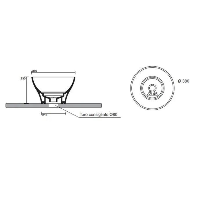 Kerasan Deco Раковина чаша d38x23h см, без перелива, цвет: Bianco 480301