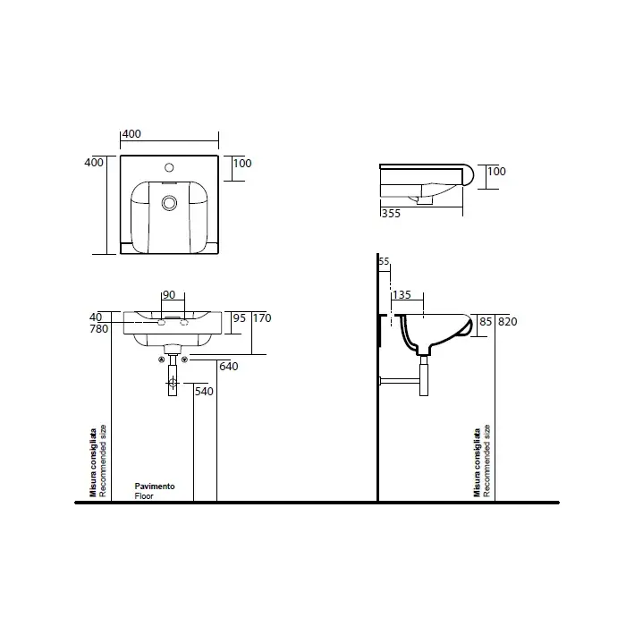 Kerasan Inka Project Раковина полувстраиваемая 40x40x10h см, с 1 отвер. и перел., цвет: Nero lucido 341204 nero*1