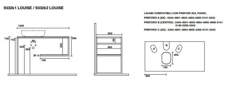 Kerasan Louise Консоль под раковину 120x50 см, подвесная с полкой, цвет: Nero matt 9322k3