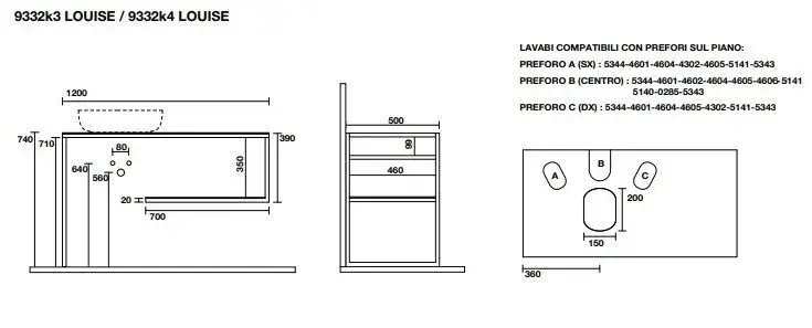 Kerasan Louise Консоль под раковину 120x50 см, подвесная с полкой, цвет: Bianco matt 9322k4