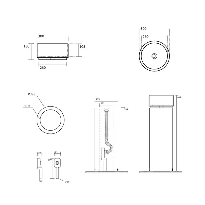 Kerasan Oke Раковина для напольной установки d30x15h см, без перелива, цвет: Bianco matt 554030