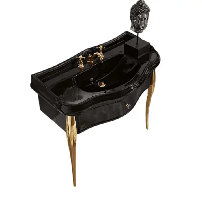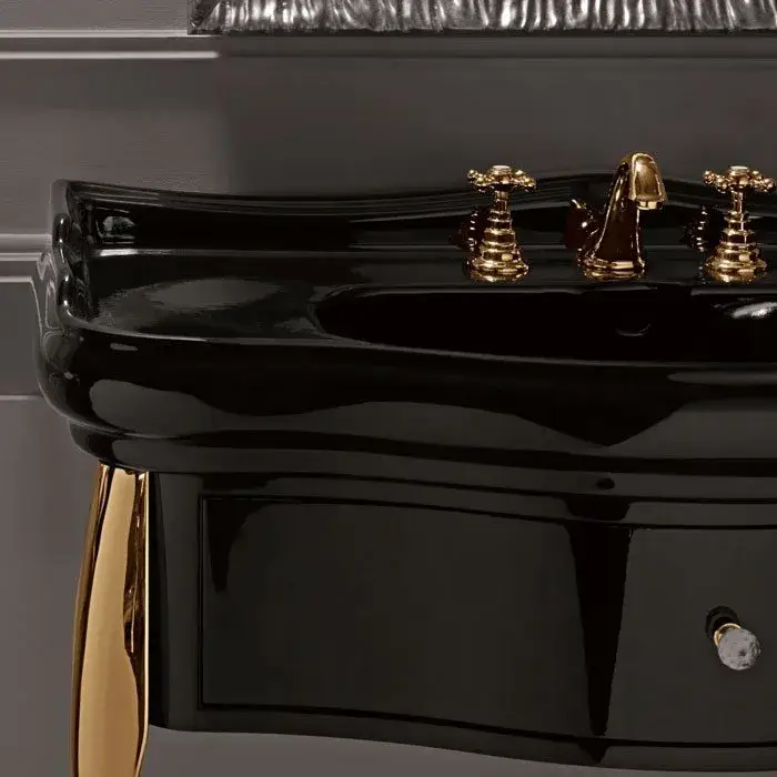 Kerasan Retro Консоль 100x54 см, под раковину на 100 см, напольная, с ящиком, цвет: Nero lucido/Oro 7363K4