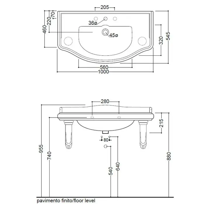 Kerasan Retro Раковина подвесная 100x54,5, с 3 отвер. под смеситель и переливом, цвет: Neco lucido 105004 nero*3