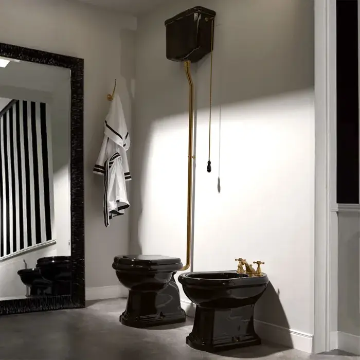 Kerasan Retro Унитаз приставной моноблок 72x38,5см, без крышки, со сливом в стену, цвет: Nero lucido 101304nero