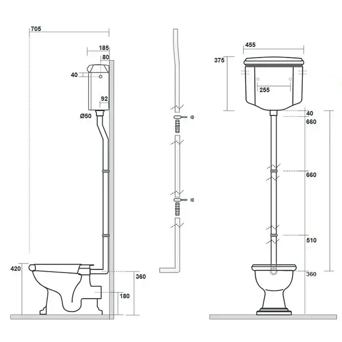 Kerasan Retro Бачок подвесной для высокой трубы, без трубы и механизма, цвет: Nero lucido 108004 nero