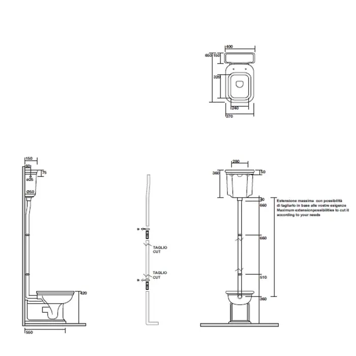Kerasan Waldorf Бачок для унитаза, для монтажа с низкой трубой, цвет: Nero lucido 418204 Nero lucido