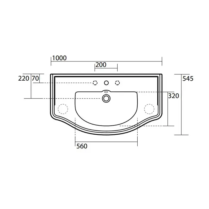 Kerasan Retro Раковина подвесная 100x54,5, с 3 отвер. под смеситель и переливом, цвет: Neco lucido 105004 nero*3
