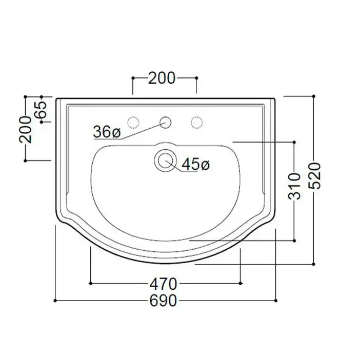 Kerasan Retro Раковина подвесная 69x52 см, с 3 отверстиями под смеситель и переливом, цвет: Bianco 104601*3