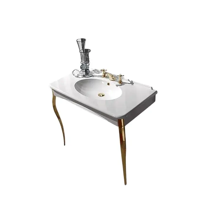 Kerasan Retro Раковина с консолью 100х55 см, с 1 отвер. под смеситель, с переливом, цвет: Bianco/Oro 1049K1 bi*1 oro legs