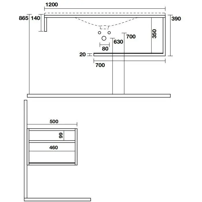 Kerasan Shape Louise Консоль под раковину 100x50 см, подвесная с белой полкой, цвет: Nero matt 9324K2