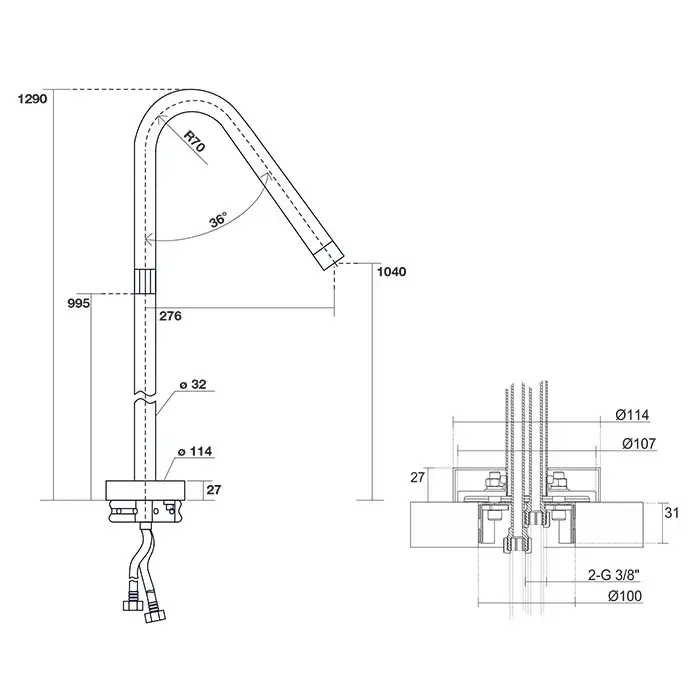 Kerasan Набор для подключения скрытого смывного бачка к напольному унитазу d=40 мм, цвет: Oro 755291 oro