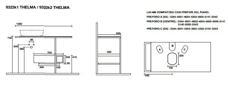 Kerasan Thelma Консоль под раковину 108x50 см, напольная, с полотенцедерж., цвет: Bianco/Nero matt 9323k2