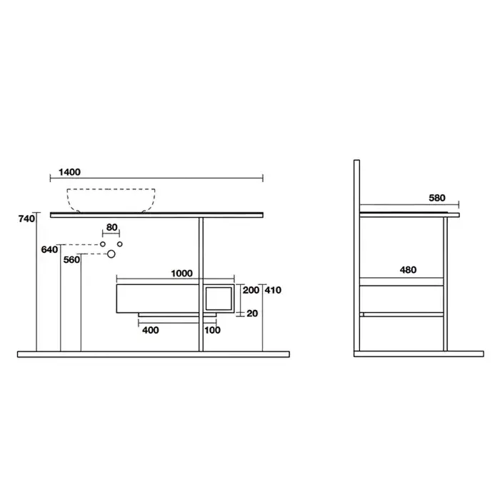 Kerasan Thelma Консоль под раковину 140x58 см, напольная, с полотенцедерж., цвет: Bianco/Nero matt 9323k6