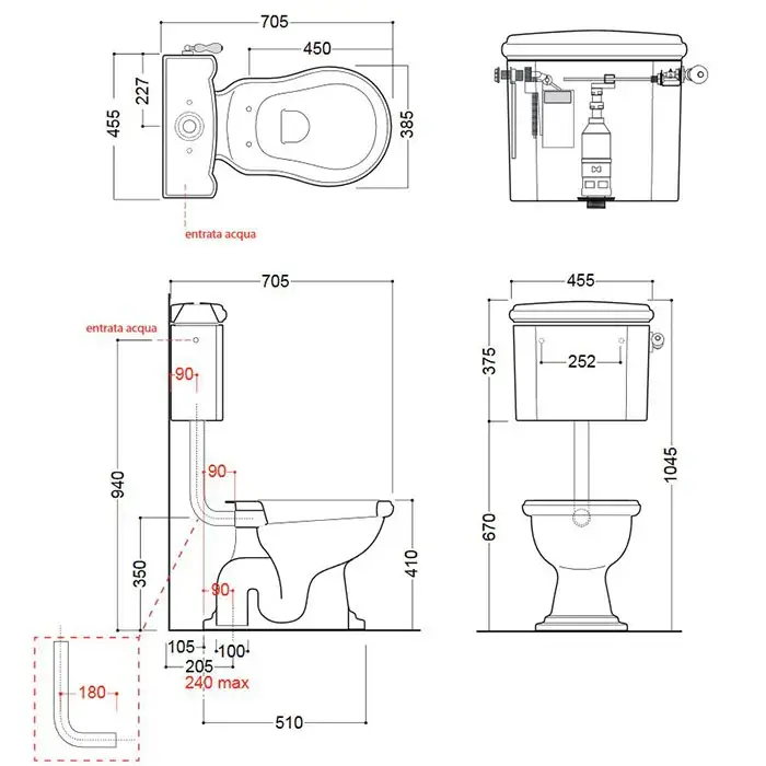 Kerasan Набор для подключения скрытого смывного бачка к напольному унитазу d=40 мм, цвет: Oro 755291 oro
