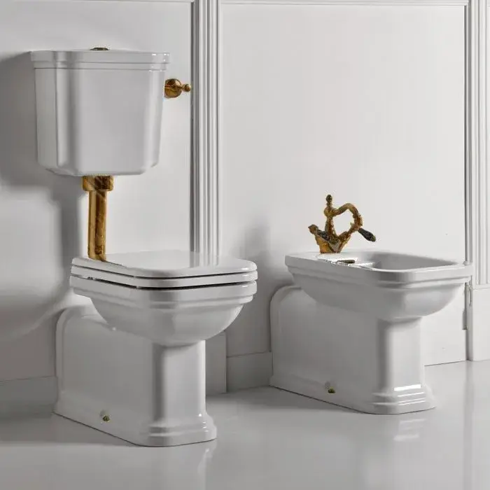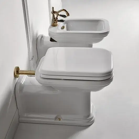 Kerasan Waldorf Биде напольное 65x37 см, с 1 отвер. под смес., перел. и наклад., цвет: Bianco/Bronzo 4120K3bi/br*1
