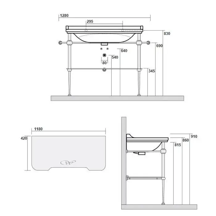 Kerasan Waldorf Консоль 120x55 см, под раковину на 120 см, со стеклянной полкой, цвет: Bronzo 9203K3br
