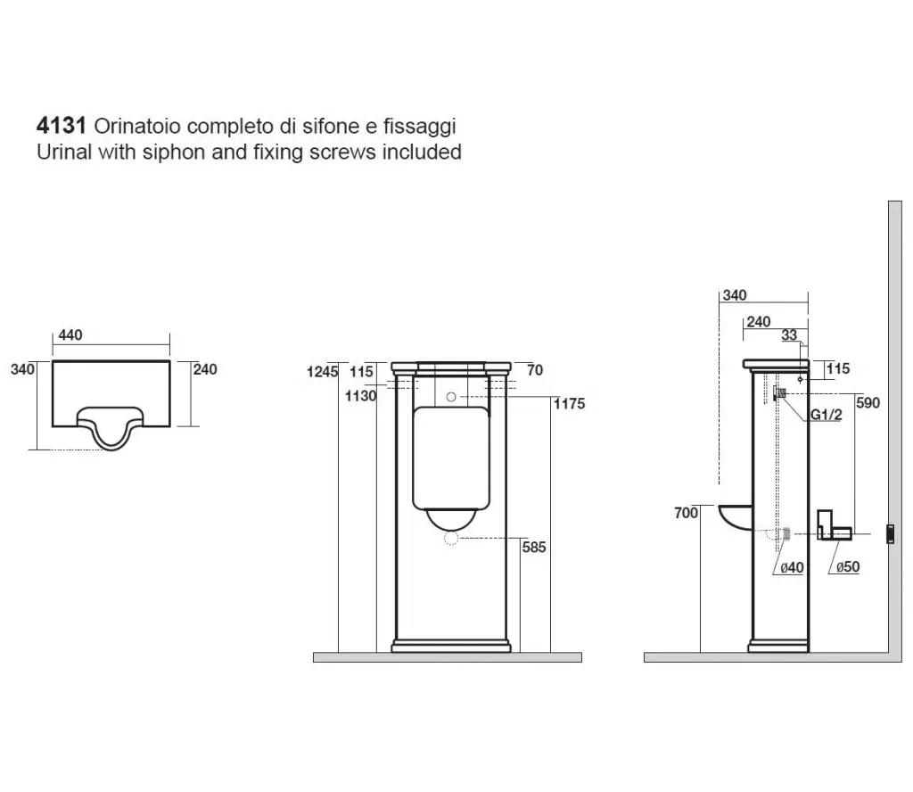 Kerasan Waldorf Писсуар напольный со скрытым подводом, сифоном и комплектом крепежей, цвет: Bianco 413101